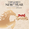 Please be informed that our office will be closed for the Chinese Lunar New Year holiday from February 15th, 2026 to February 23rd, 2026. We will resume normal operations on February 24th, 2026.